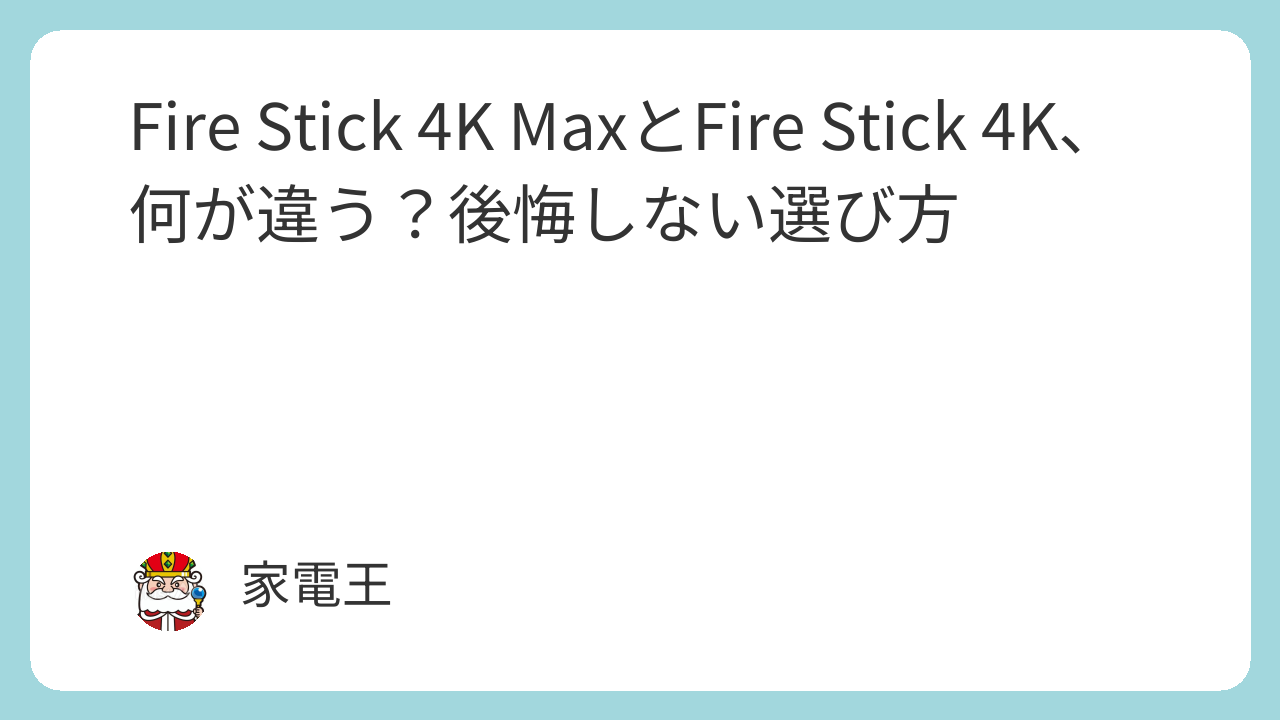 「本気で4K体験をしたい」「ゲームもやる」って人にとっては、4K Maxは「後悔しない選択肢」。一方で、「とりあえず映画見たい」って人が4K Maxを買うと、「4,000円損した」って感じになりやすい。